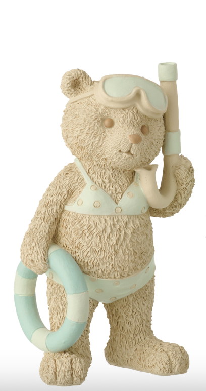 Mooi beeldje van een strandmeisje in bikini met een snorkel in de hand.