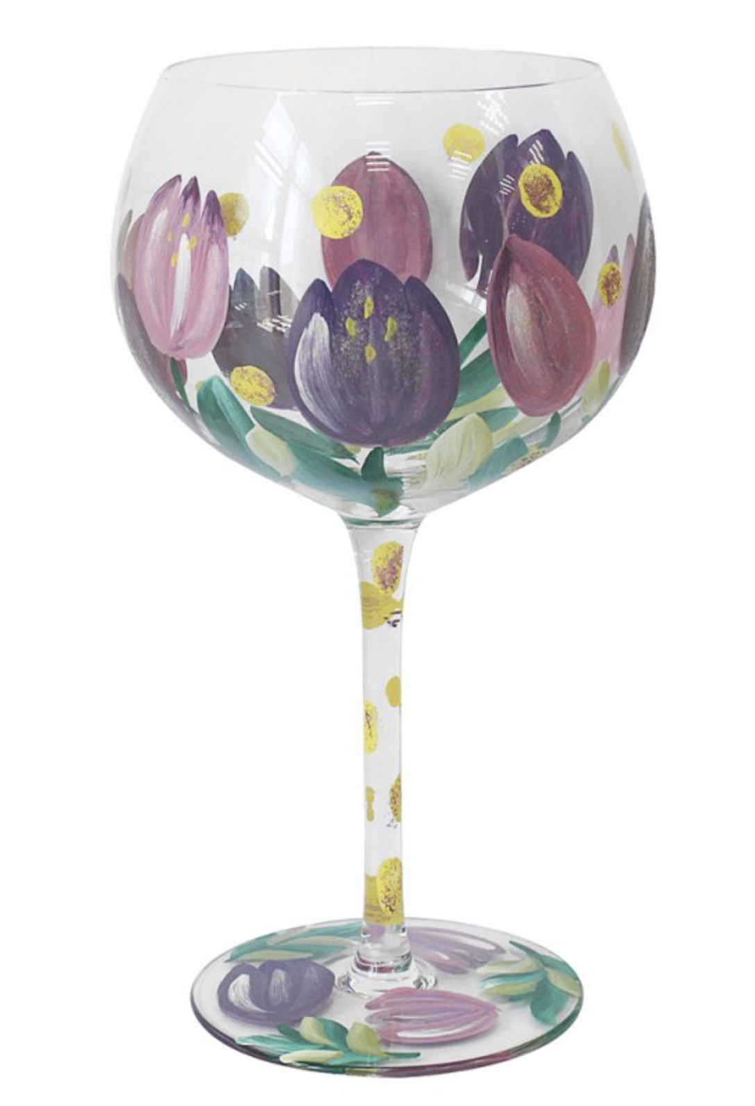Gin glas op voet, versierd met handgeschilderde tulpen . Dit glas is een leuke eyecatcher om samen te genieten van een frisse gin tonic!