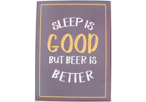 is toegevoegd aan uw winkelwagenRechthoekige spreuk met tekst "Sleep is good but beer is better"