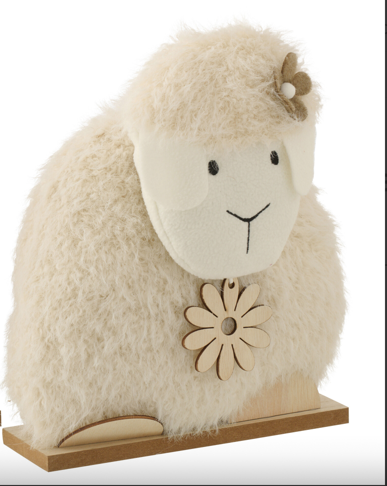 Schaap met bloem in polyester wit large.