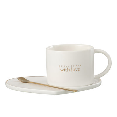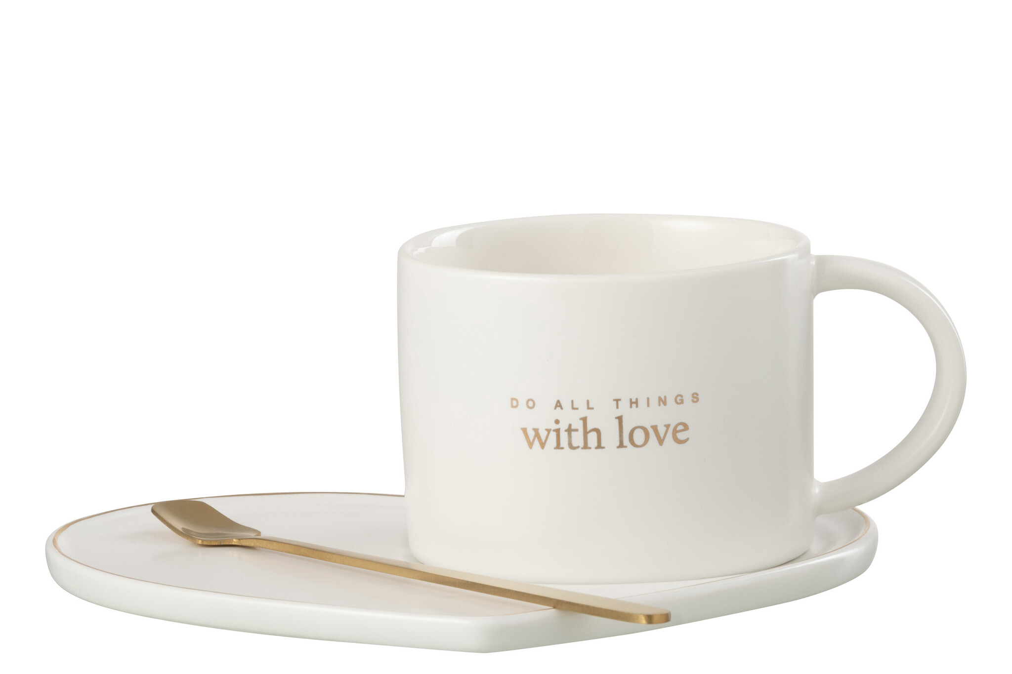 TAS MET SCHOTEL EN LEPEL - PORSELEIN