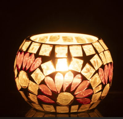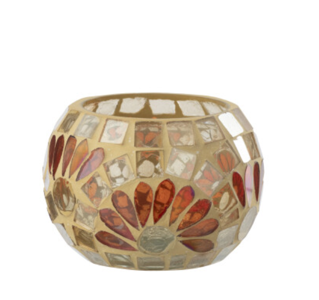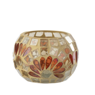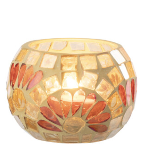 Mooie theelichthouder in gebroken wit / warmgeel small.