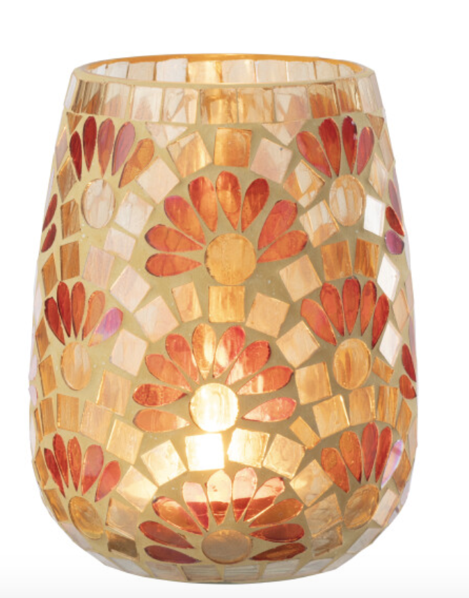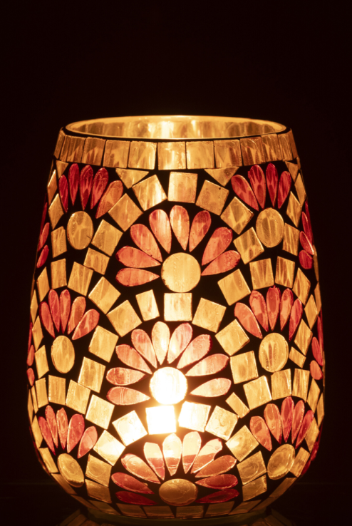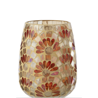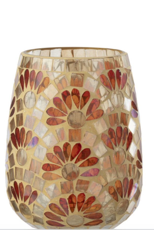 Mooie theelichthouder in gebroken wit / warmgeel large.