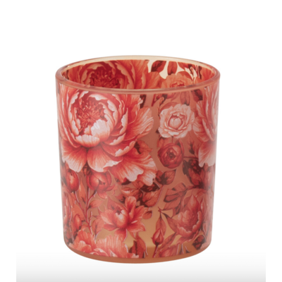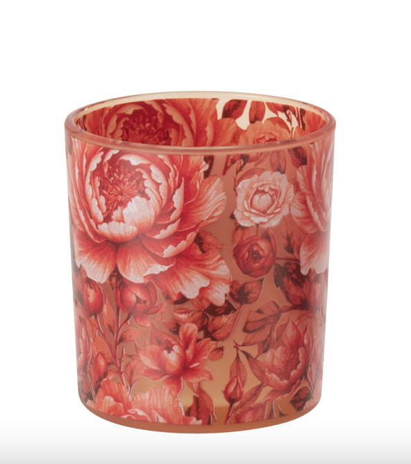Mooie theelichthouder small in oranje met bloemen.