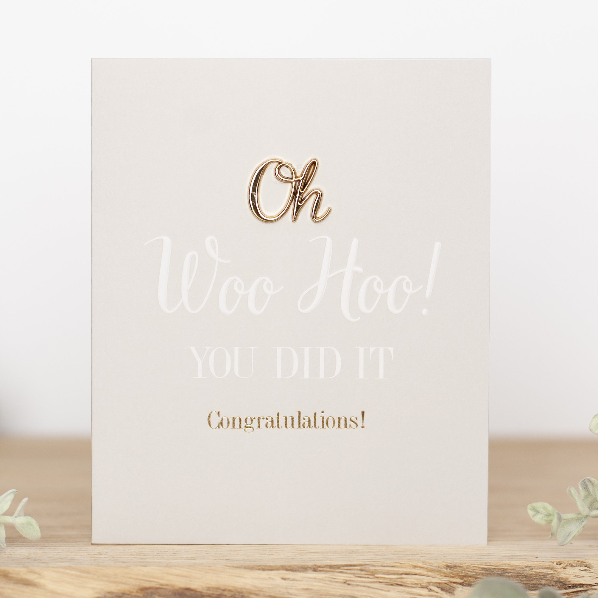 Luxe lichgrijze wenskaart met goudfolie afgewerkt